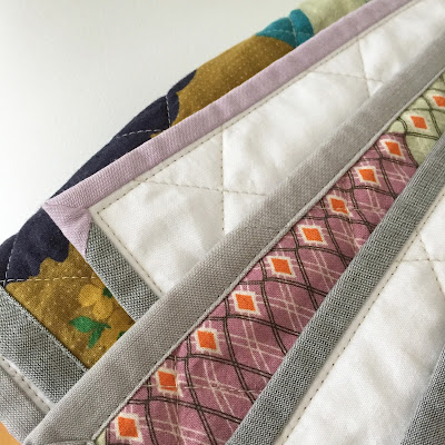 I used cream thread for the cross-hatch quilting, and I machine bound the quilt with leftover Oakshott scraps, using my newest