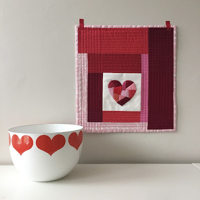 This mini quilt started out as a simple embroidered heart, which I stitched for a class that I taught a few years ago. While I often frame my finished embroidered pieces in either hoops or on stretcher bars, I wanted to take a different approach for this piece.