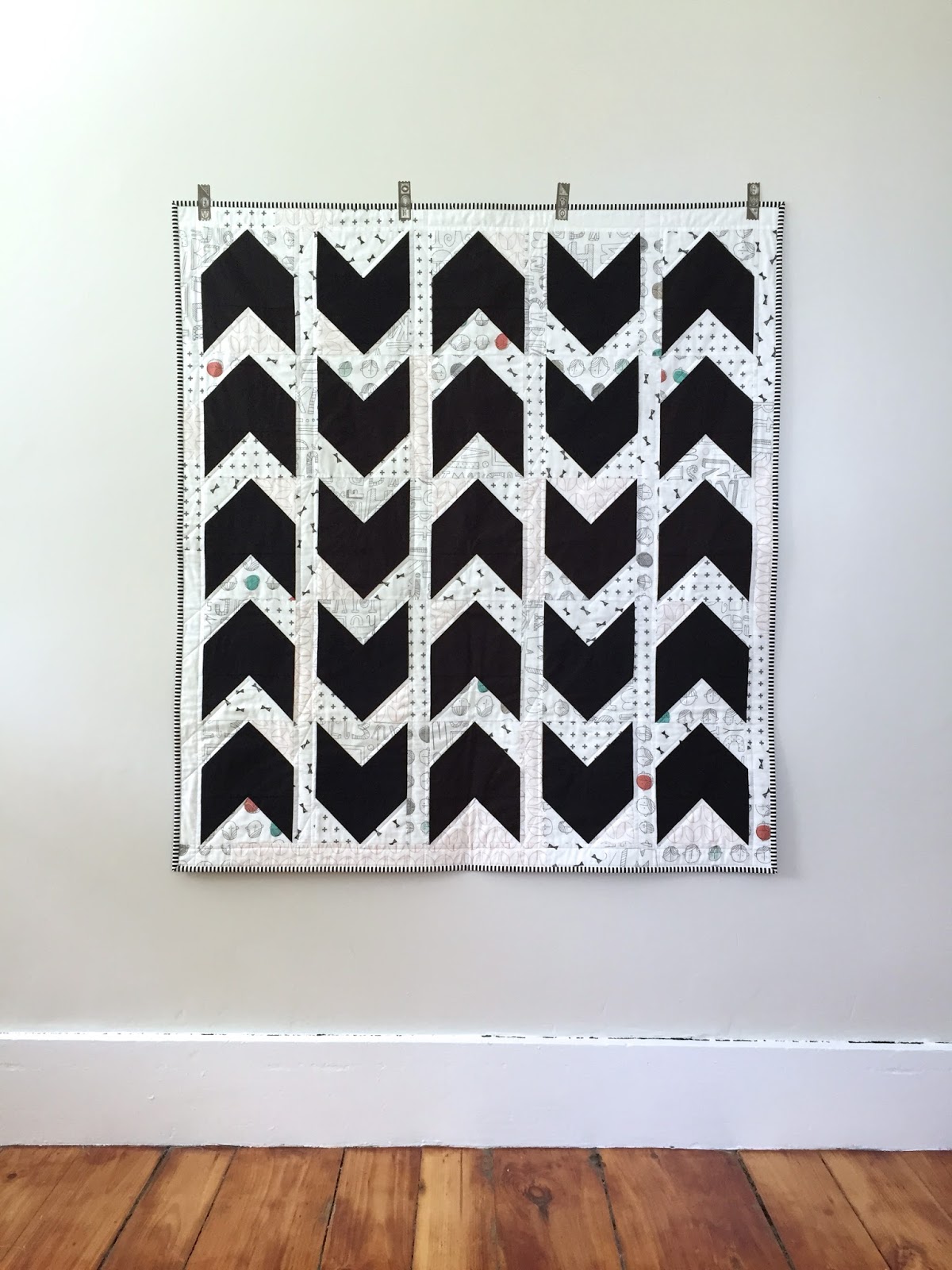 I really love the graphic pop that results from pairing the low-volume prints with a solid black, and how the prints create a subtle, yet interesting background. It's fun to spot faces, bow ties, and letters between each of the arrows.