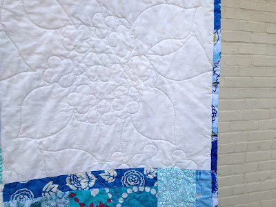 Eileen Quilts, for quilting. I selected a hydrangea quilting pattern, which I thought nicely complemented the light-blue color scheme and the vintage floral sheet I used for the backing. Lindsay did a beautiful job, and I've already sent another quilt to her to be quilted.