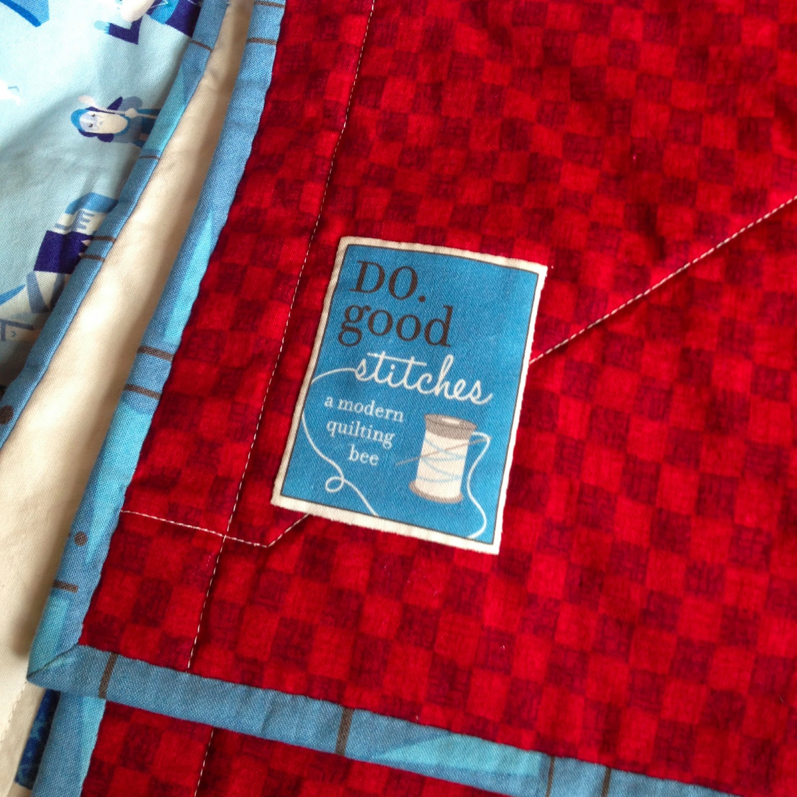 I bound the quilt in blue and yellow scraps and added a do. Good Stitches label to the back.