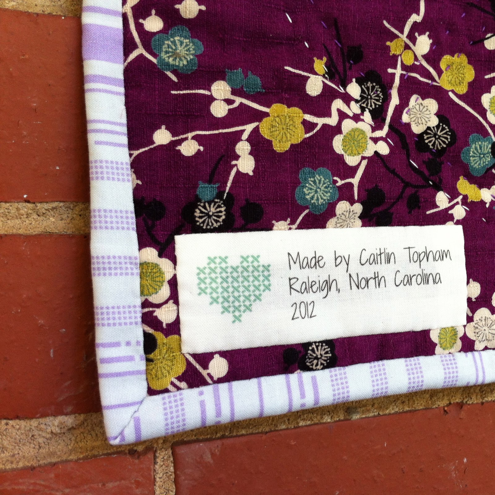 I opted to hand quilt the piece, using purple floss in the wedges and white floss in the inner and outer borders.