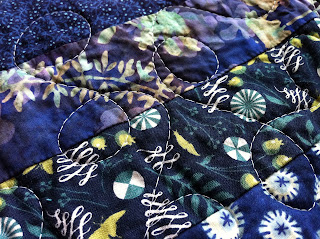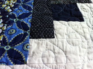Joanne, who beautifully quilted it with loops, and then bound it with solid navy (and a little bit of white) when it returned. It's the largest quilt I've made to date, and I'm so, so happy with how it turned out.