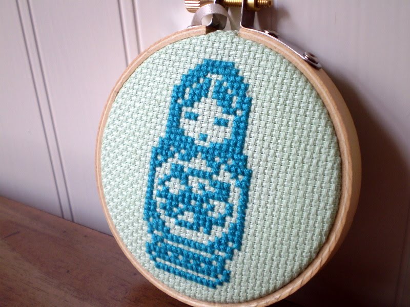 Adaiha and I decided to do another swap. For our second go-around, we decided to make mini embroidered pieces (I used a three-inch embroidery hoop). Knowing that Adaiha liked matryoshka dolls, I stitched one up using a pattern I found in