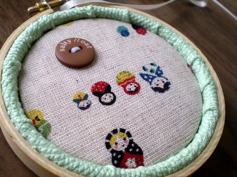 this helpful tutorial by Maximum Rabbit Designs to finish off the back, which featured a scrap piece of matryoshka fabric and a salty // oat button.