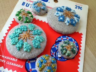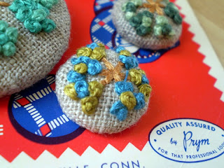 Adaiha, sent me this lovely set of buttons, embellished with lots of pretty French knots (my favorite!) in blues and greens.