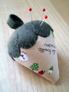 In the package, among squares of vintage fabric, vintage buttons, and chocolates, I also found an adorable strawberry pincushion...