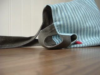 pillowcase swap that I'm participating in. One of the many simple patterns in the book is for a lunch tote, and since Elton (the crazy puppy) recently chewed through the straps of my current lunch bag, I thought it'd be a useful pattern to try out.