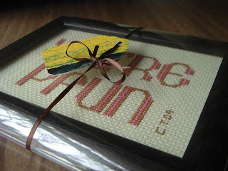 you're pfun cross-stitch Posted by Caitlin Topham on October 03, 2009 For my friend's upcoming birthday, I decided to cross-stitch her a simple message, using an alphabet design from my booklet. Since her last name begins with "Pfun," this is what I ended up with: And here it is all wrapped up and ready to go: