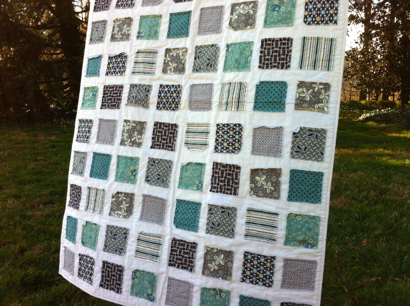 To celebrate their arrival, I made each of them a quilt. For the first quilt, I made yellow and gray half-square triangles using some of my...