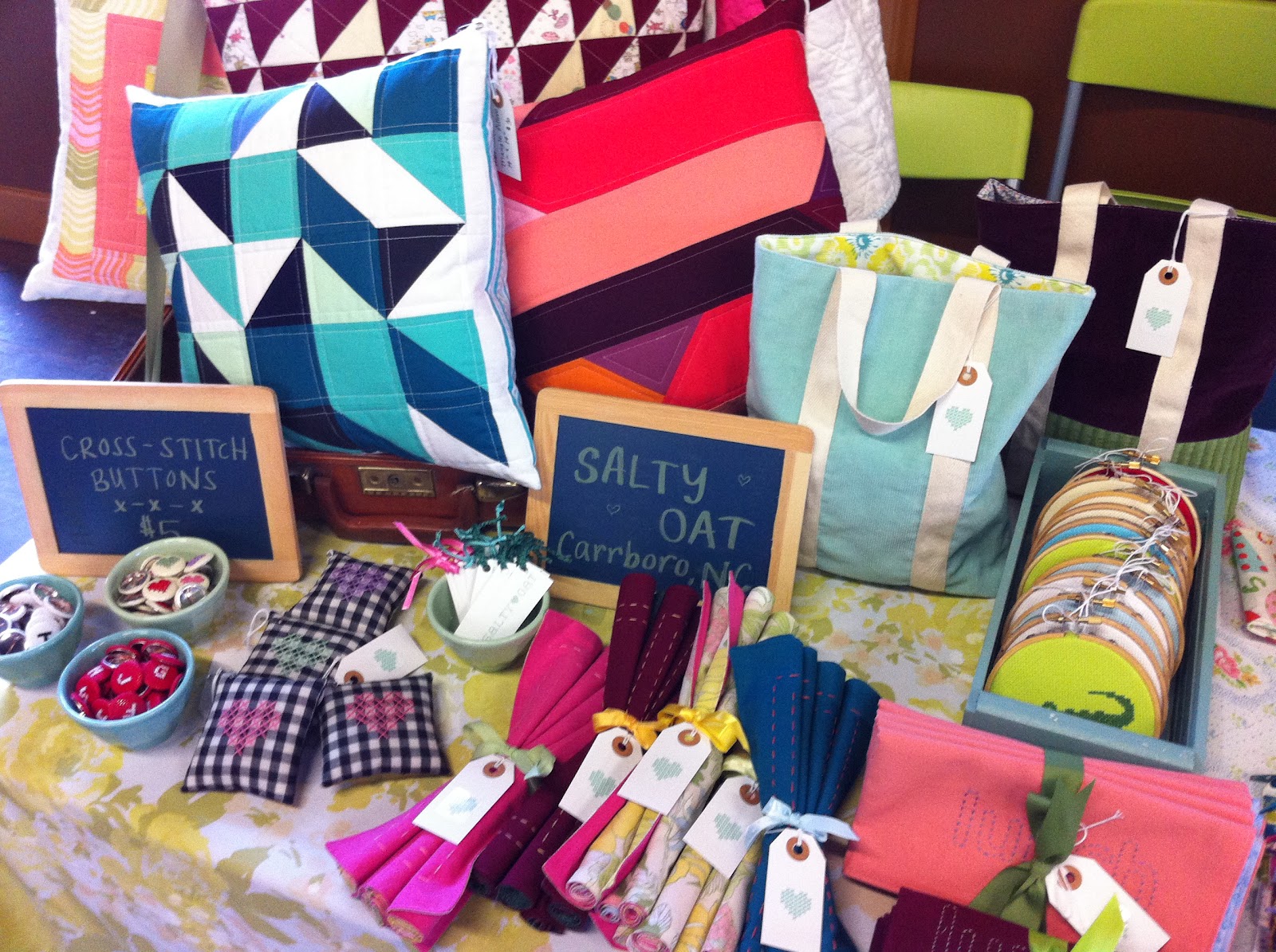 For the past few weeks, I've been cross-stitching and quilting up a storm in preparation for the upcoming Hand to Hand Market in Greensboro. The market will take place on Sunday, May 20, and Kait and I will be sharing a table at the event and selling our handmade things from 1:00 to 6:00 p.m. There'll be lots of craft vendors, food trucks, and an after party with live bands. If you're in the area,...
