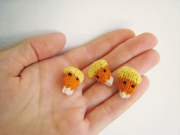 I realize Halloween has come and gone--and I don't even really like candy corn--but these are too cute to pass up. I can't knit (except for squares, of course), so would someone be kind enough to knit up some of these adorable candy corns for me?