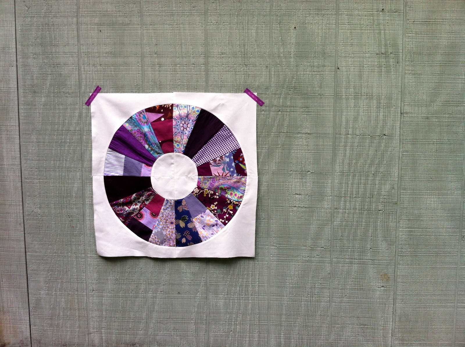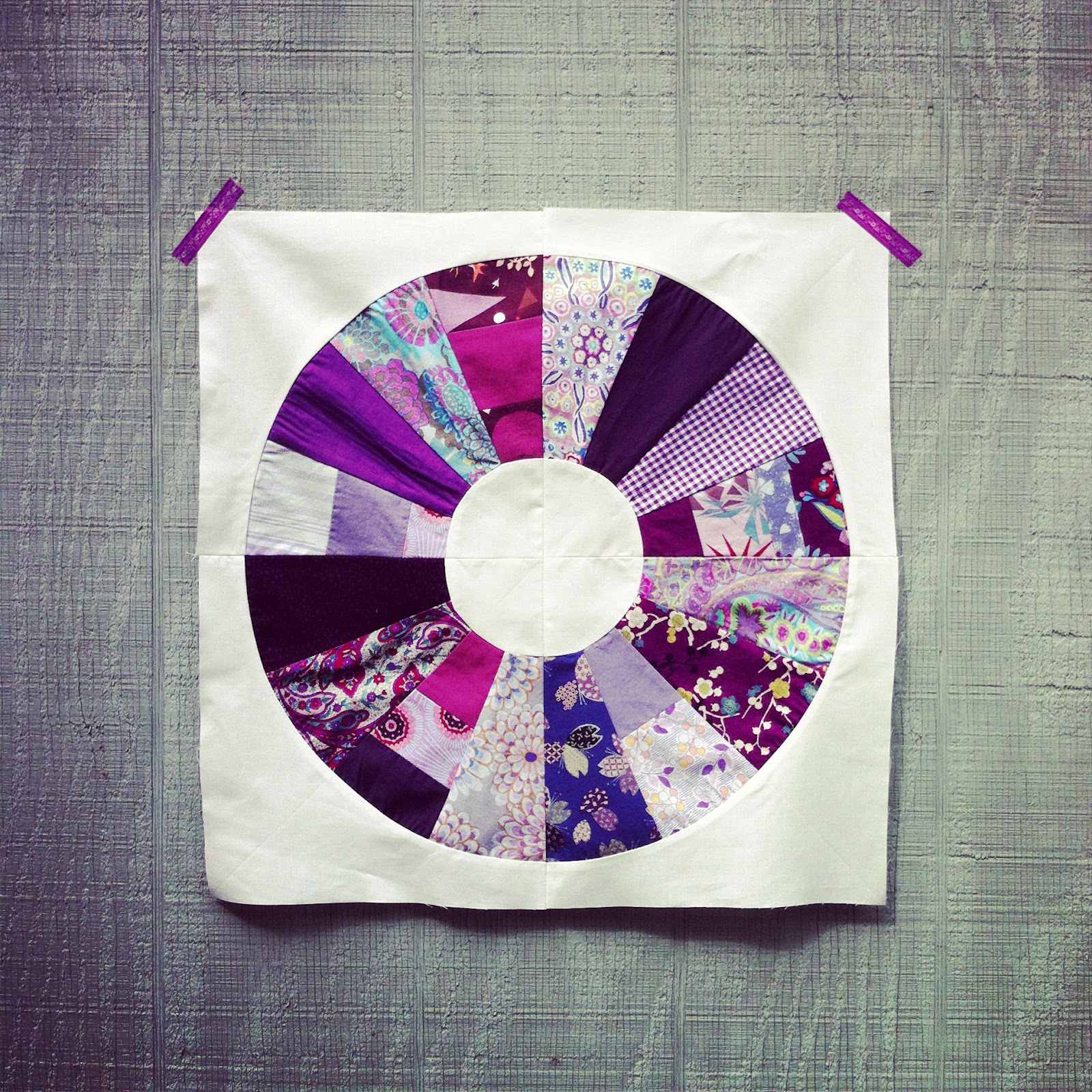 I typically don't work with purple, but since I decided this would be a birthday gift for a good friend who loves purple, I decided to give the color a shot. Thanks to some creative piecing, I managed to scrounge up 16 unique purple wedges.