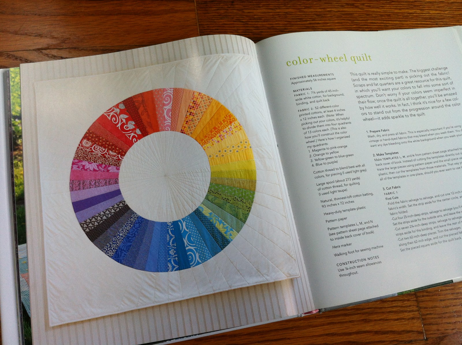 For September, Kait and I decided to make the iconic Color Wheel Quilt from LMP+QG. While I love the original pattern, I decided to change things up a bit since the idea of sorting through my scraps and selecting and arranging 52 fabric wedges in color order quickly overwhelmed me. Instead, I decided to shrink the pattern down and stick to one color. Thanks to this Purl Bee tutorial, based on the Color Wheel Quilt, I was able to print out smaller templates for my mini version.