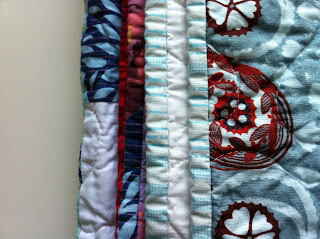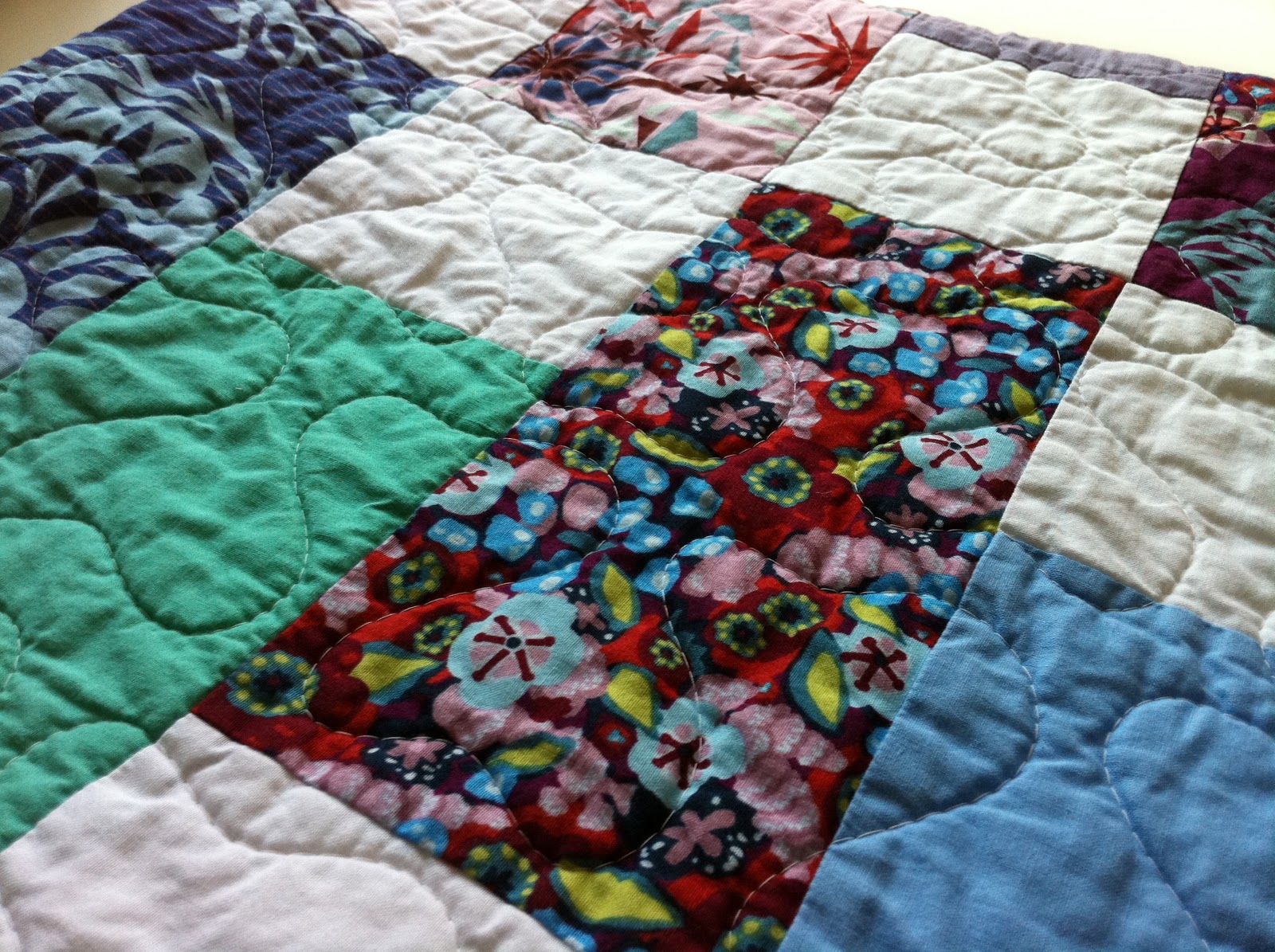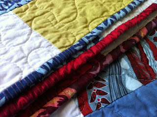 I sent it off to Joanne, who beautifully quilted it with loops, and then bound it with solid navy (and a little bit of white) when it returned. It's the largest quilt I've made to date, and I'm so, so happy with how it turned out.