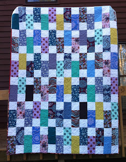 In January, right before my parents arrived for a visit, I managed to finish their Christmas gift: a queen-size log cabin quilt made from navy prints and solid white.