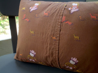 Using Ashley's quilt block tutorial as a starting point, I created the pillow from limited-edition Heather Ross for Spoonflower fabric and coordinating solids. I opted for an envelope-style back and straight-line quilting for the front. All in all, I was pleased with how it turned out.